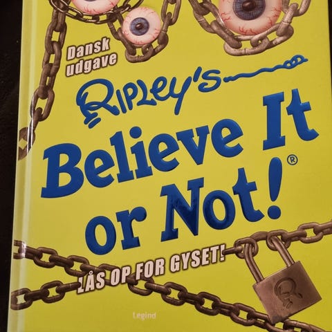 Ripley's Believe It or Not! bog i rød farve. Bogen indeholder fascinerende og utrolige historier fra hele verden. Perfekt til dem, der elsker at læse om det usædvanlige og ufattelige.