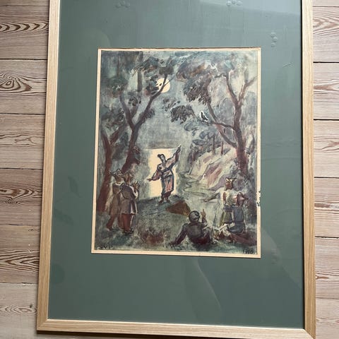 Stefan Viggo Pedersen akvarel litografi fra 1960 i træramme med glas. Kanten er papirer er lidt flosset. Måler 30x40 cm. Har andre SVP billede er til salg på andre annoncer.