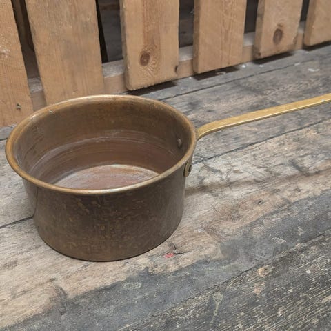 Samling af gamle gedigne kobber pander og gryder. De fremstår med brugsspor, så se billeder. Sælges samlet for 1200kr, men kom gerne med et bud