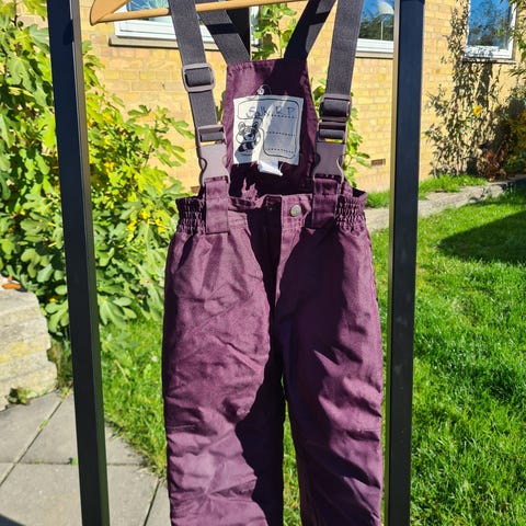 Vinter overtræksbukser fra Racoon med seler. Perfekt til en tur ud i sneen. Har fået en lille plet grøn maling på det ene ben (se foto).