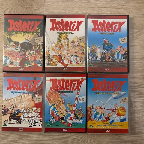 Asterix DVD Collection med 6 DVD'er indeholdende flere film fra Asterix-serien. DVD'erne har farverig grafik og indeholder animationer med karaktererne fra Asterix-universet.