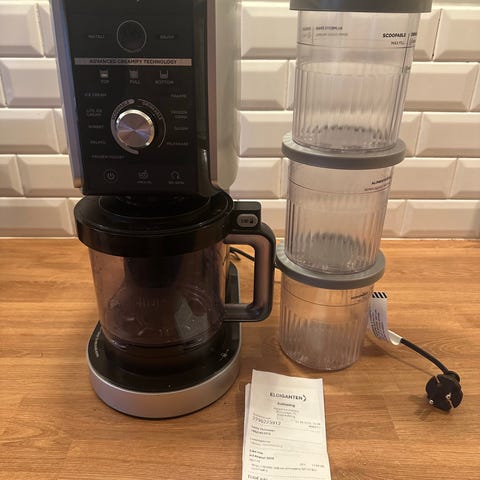 Maskinen fungerer helt uden problemer, den er kun blevet brugt en håndfuld gange. Kvittering medfølger fra Elgiganten, og en bog fra Ninja med opskrifter.