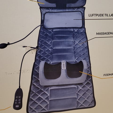 MassagePro Massagemåtte designet til at massere ryg, skuldre og ben. Udstyret med flere massageindstillinger for tilpasset brug. Inkluderer fjernbetjening for nem betjening og målrettet muskelafslapning.