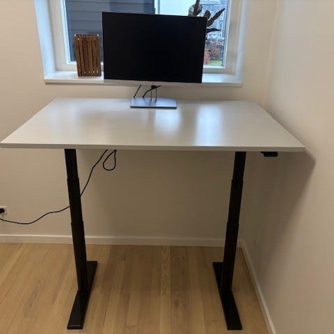 Hæve/sænke bord fra Ikea med elmotor. Bordpladen er 120x80 cm. Der medfølger kabelophæng til under bordpladen.