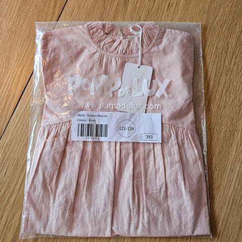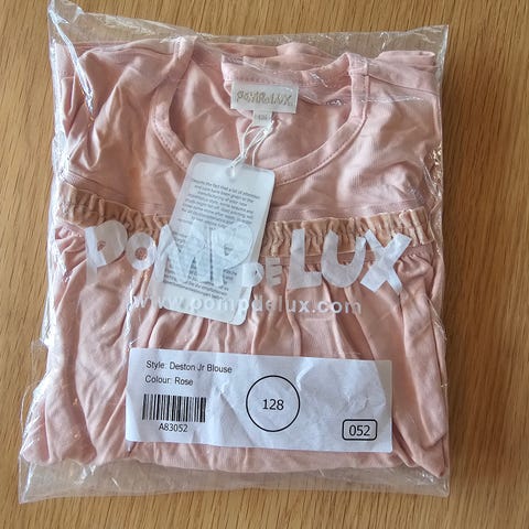Min datter har fået denne i gave januar '26 og vil ikke bruge den. Derfor sælger hun videre for at få lidt lommepenge. Grå bluse med flæse samt teksten wild and free.