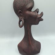 Afrikansk træ hovede, Flot træ skulptur af afrikansk ansigt udskåret i mørkt træ. Mål: 25x21x20cm