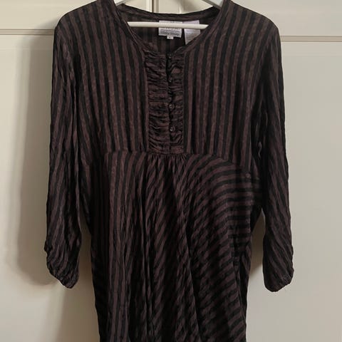 Masai skjorte i størrelse XXL til kvinder. Skjorten er blå med hvide prikker og er lavet af viskose. Materialet giver en blød og let fornemmelse, velegnet til daglig brug.