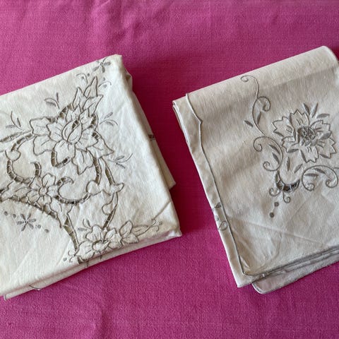 Smukke gamle Vintageduge med broderi fra min samling, 12 duge sælges samlet. Perfekt til at sy tøj af eller brug dem som de er.