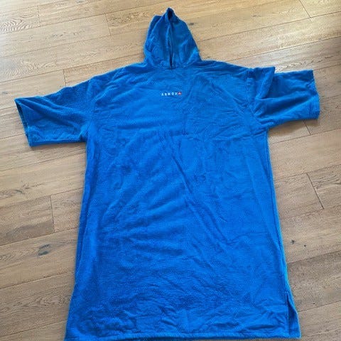 Westwind Hammam poncho er i et håndklæde materiale, som giver varme. Ponchoen er designet med en hætte, en kængurulomme foran og Westwind logo på højre bryst.