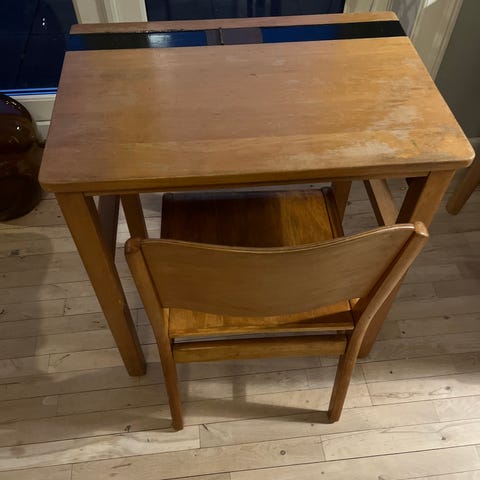 Flot gammelt skolebord. Højde 61 cm, dybde 50 cm og bredde 120 cm.