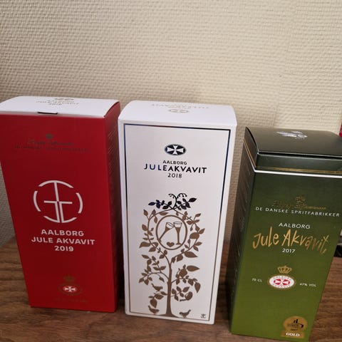 7 flasker julesnaps, forskellige årgange, 11 GJ juleuro 4 slags og 10 GJ lyseholdere sælges samlet for i alt kr. 2000
