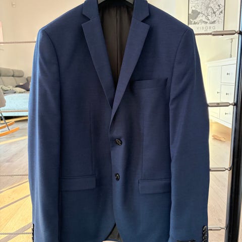 Jack & Jones Premium herre blazer i størrelse 42. Blazeren er blå og lavet af polyester. Designet til mænd med en super slim pasform. Brugt en gang til konfirmation