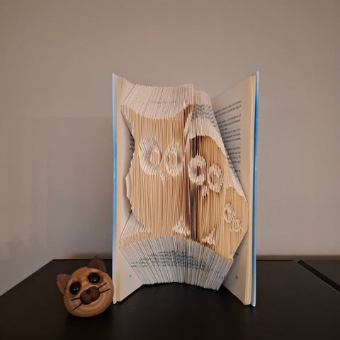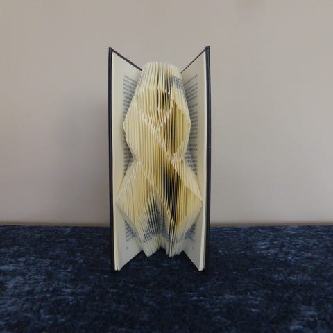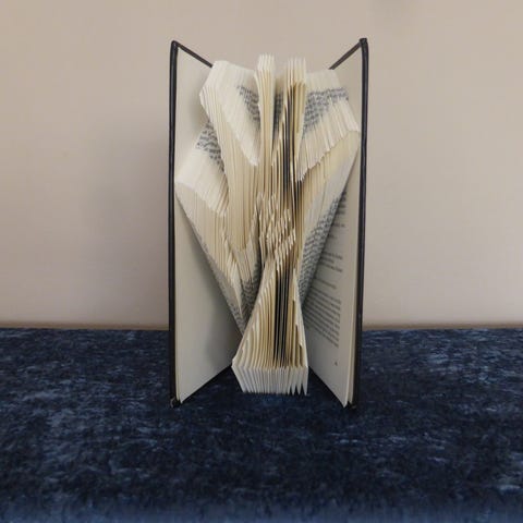 Flot sommerfuglemotiv foldet i siderne af en bog. Sød og anderledes gaveidé og oplagt dekoration til en udestue/ orangeri eller lign. Siderne er håndfoldet i bogen, og er ikke limet sammen,