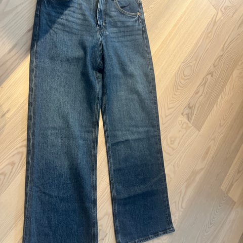 H&M Denim bukser i blå farve, størrelse 38 til kvinder med taljemål W28. Fremstillet i denim materiale.