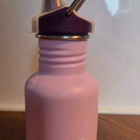 Stål/sølv Klean Kanteen drikkedunk.