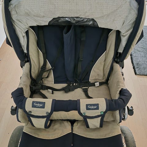 Tvillingeklapvogn inkl en lift. God sammenklappelig både vogn og lift.