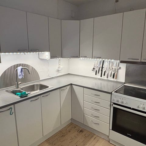 Brugt hjørnekøkken sælges ifm installation af ny køkken. Køkkenet tages ned i uge 12 og 13, og kan afhentes ultimo uge 13