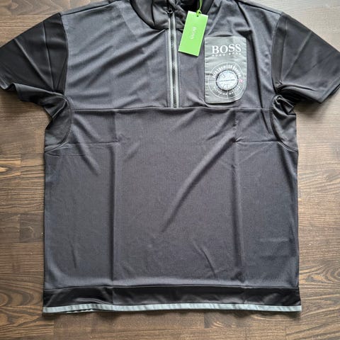 HKO sejler t-shirt i sort med gule detaljer, størrelse L. Fremstillet af 88% nylon og 12% spandex. Indeholder UV-beskyttelse med faktor 50+.