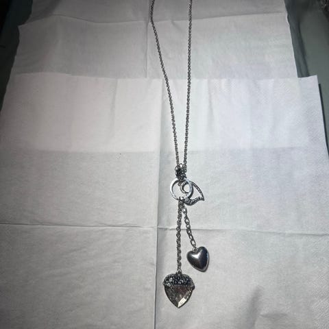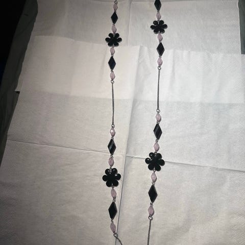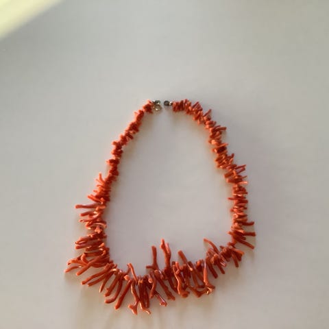 Lang kæde med rav og andre materialer