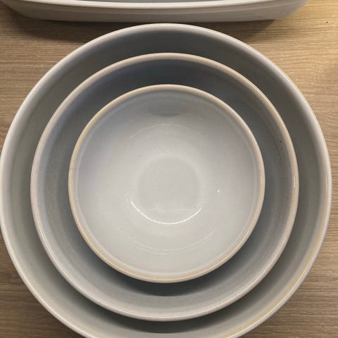 Knabstrup Keramik tekande og thekopsæt i lyst keramik bestående af tekande, flødekande, saft/mælkekande, 4 kopper, 7 underkopper, 7 tallerkener, marmeladekrukke og sukkerskål samt 2 lysestager. Sættet har en enkel og tidløs design med glat overflade og håndtag. Man kan se at der er drukket mange gode kopper the af det :)