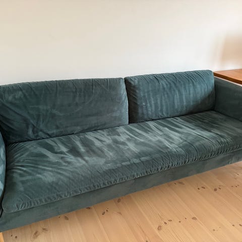 Mørkegrøn 2,5 personers sofa fra Ilva ca 5 år gammel. Kommer fra røg og dyrefrit hjem.