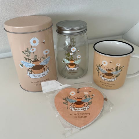 Andet, Cover the kop, Strik cover til små kopper 4 stk i pink 3 stk i hvid med teksten