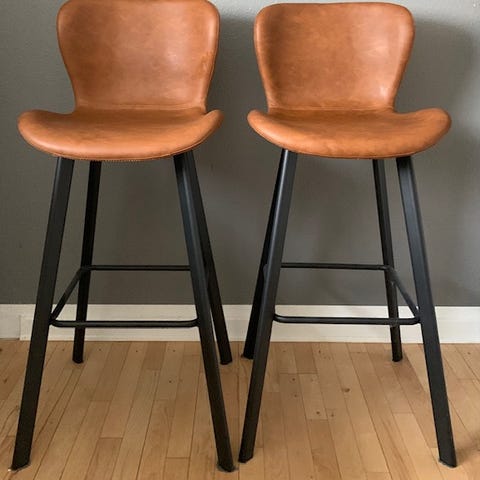 Ally barstole fra Ilva med cognacfarvet kunstlæder og ben i sort pulverlakeret