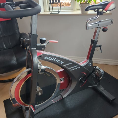 Abilica Spinningcykel med justerbart sæde og styr, indbygget display til træningsdata, og robust stel i sort farve. Egnet til indendørs konditionstræning.