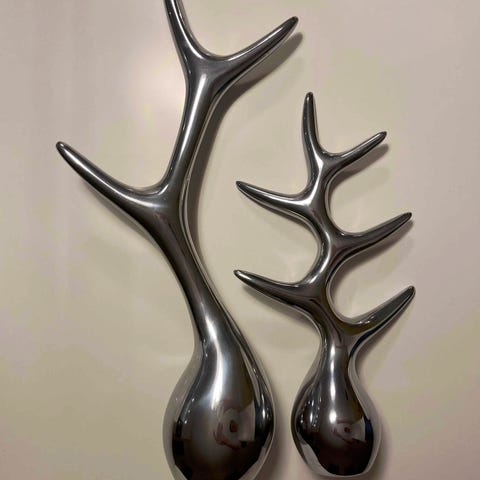 Hvid smykkeholder formet som et træ. Højde ca. 33 cm. Har enkelte mindre ridser/brugsspor, men fungerer helt fint og er stadig dekorativ. Perfekt til opbevaring af halskæder, armbånd og øreringe.