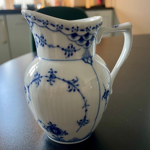 Royal Copenhagen Musselmalet Riflet kande i porcelæn