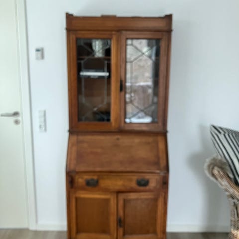 Glasvitrine i sæbebehandlet bøgetræ. Massiv front og rammer.