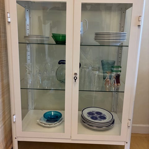Skabet er tungt, så der skal nogle stærke personer til at hente det. Alternativt skulle det være muligt at skille det ad.