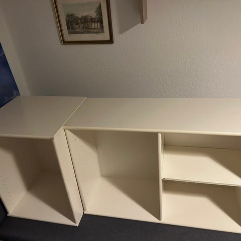 Gode reoler i god kvalitet. De er lidt slidte i maling, men fejler ellers ikke noget. 450 kr for 3 stk