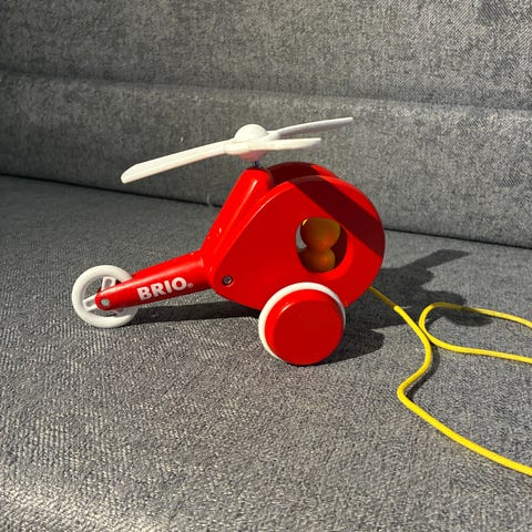 BRIO Rød Træ Helikopter Legetøj i træ med hvid rotor.