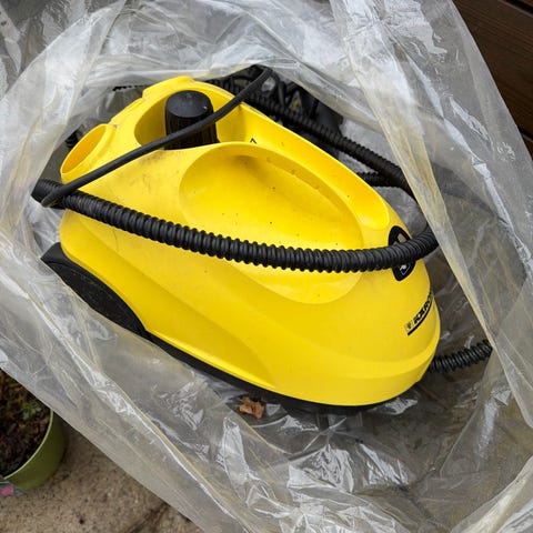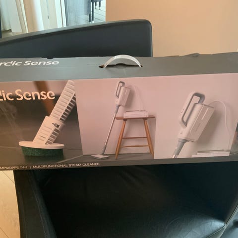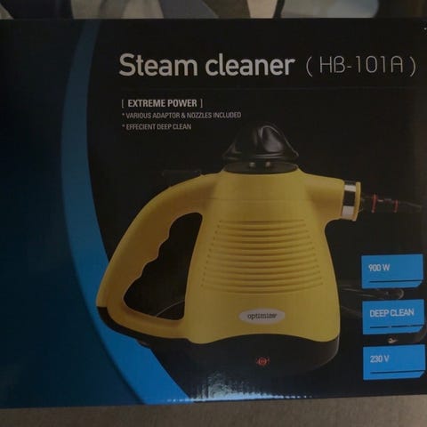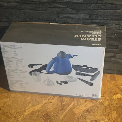 Lille handy damprenser købt i Biltema, men aldrig taget i brug.