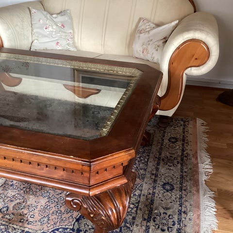 Bordet har de seneste år kun været anvendt som puf og glaspladen har derfor kun været anvendt i ca. 1 år.