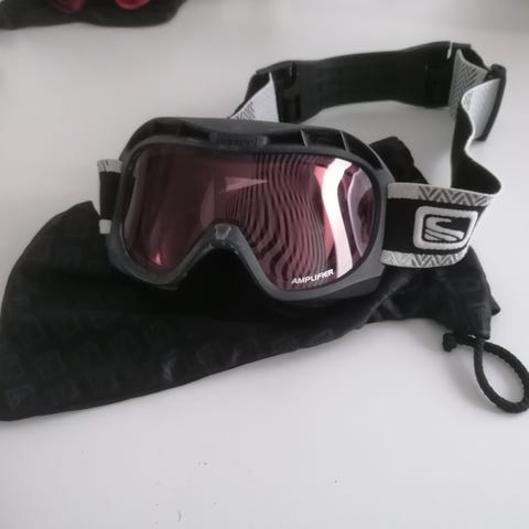 Børne /unge skibriller brugt en gang på ski, har nogle ridser på glasset som ikke har indflydelse på udsyn