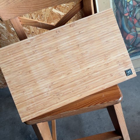 Zwilling magnetisk knivblok lavet af bambustræ. Den er designet til at opbevare knive sikkert og hygiejnisk ved hjælp af stærke, skjulte magneter, der holder knivene på plads på overfladen.