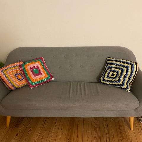 Flot grøn stofsofa. L 175 cm, h 75, D 80.