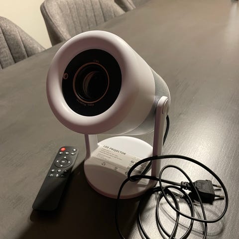 Sælger denne smarte projektor, da jeg slet ikke har brugt den. Den er kun åbnet og testet – ellers 100% ny!