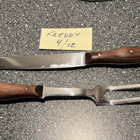 Materiale: Rustfrit stål og palisander. Designet til brug ved spisning med fokus på funktionalitet.