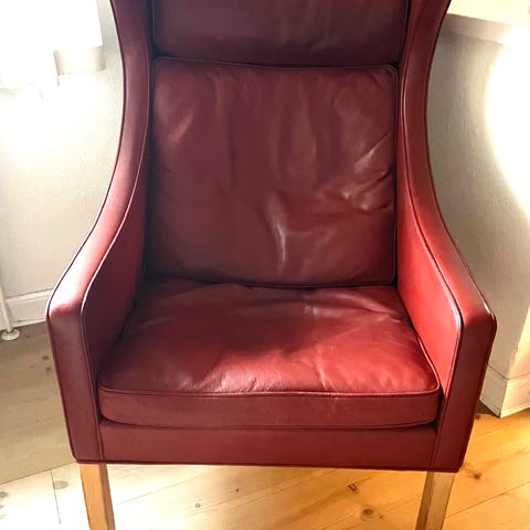 Børge Mogensen øreklapstol fra 70’erne er blevet genbetrukket med hestedækken og bunden er blevet renoveret.