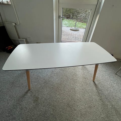 Flot hvidt laminat sofabord med trækant og kromben. Sælges grundet pladsmangel.