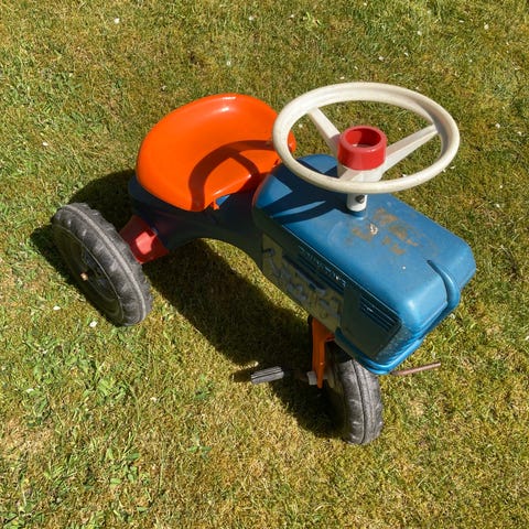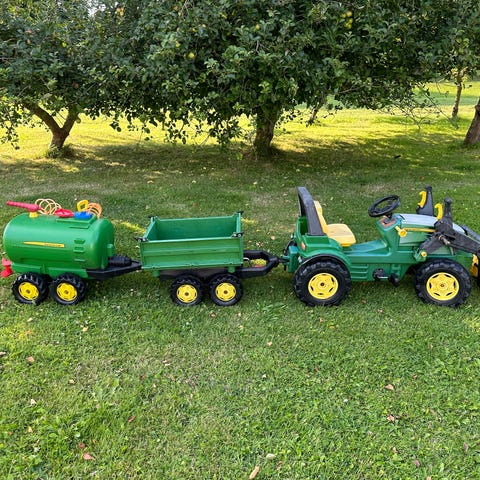 Med vogn og vand(gylle)vogn. Godt brugt, men stadig fuldt funktionsdygtigt. Et køretøj enhver knægt på landet må eje.