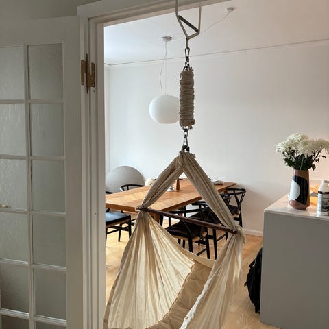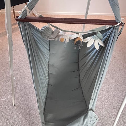 Der følger en lille ekstra kapokmadras/underlag med, som jeg ikke ved om er lavet til slyngevuggen.