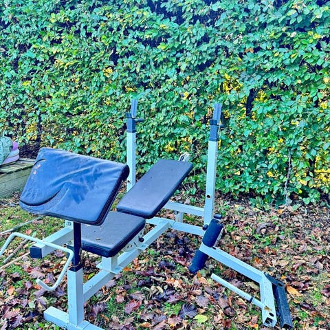 Justerbar træningsbænk og håndvægte
