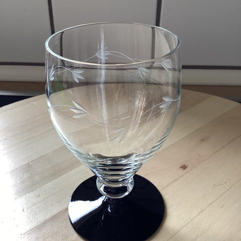4 Rødvinsglas, Holmegaard, Ranke. Med sort fod. Højde Ca. 12 cm.
