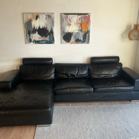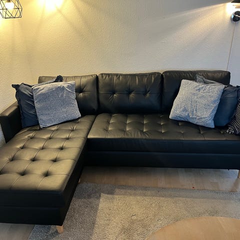 Jysk sofa med chaiselong sort læder