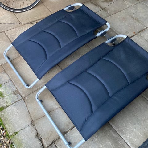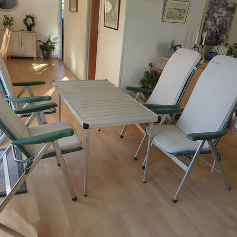 4 stk. Isabella campingstole i koksgrå med tilhørende fodskamler til alle fire stole. Stolene er brugte men i superfin stand alle fire. Sælges kun samlet.
