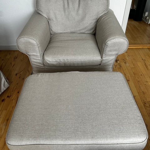 Lænestol fra Jysk sælges med puf - bud modtages!